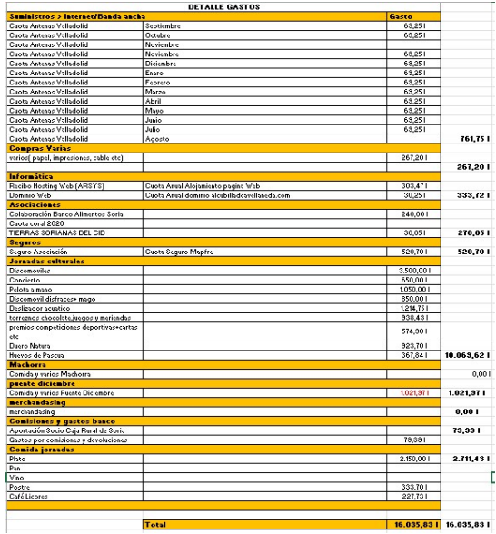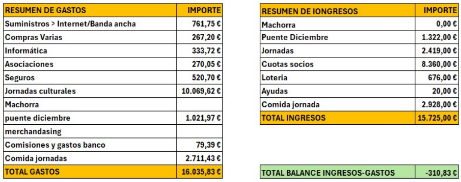 Como acto de transparencia de la actual junta, se publica el estado de las cuentas de la asociación, así como el detalle de ingresos y gastos del último año.
