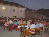 El pasado día 22 de julio la Asociación Amigos de Alcubilla inauguró el horno de barro coincidiendo con la celebración de Santa M. Magdalena, patrona de nuestra localidad. El acontecimiento fue un éxito rotundo con la asistencia de 150 comensales, una cifra muy alta teniendo en cuenta que todavía estamos en el mes de Julio. Sobre las 9.30 de la noche dió comienzo la cena que consistió en un entrante de güeña y patatas fritas para ir abriendo boca, y como plato fuerte cordero asado acompañado de ensalada y de postre helado. Debido a la cantidad de asistentes y al calor que hacía la cena se celebró en la calle, detrás de la fábrica, donde después de cenar disfrutamos de la verbena amenizada por el grupo del Burgo de Osma “EL TREBOL DE CASTILLA” que se alargó hasta las 3.30 de la madrugada. La gente disfrutó a tope y hubo unos cuantos que no dejaron de bailar de principio a fin de la velada.