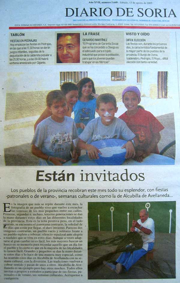 Diario de Soria 13 de Agosto de 2005, contraportada